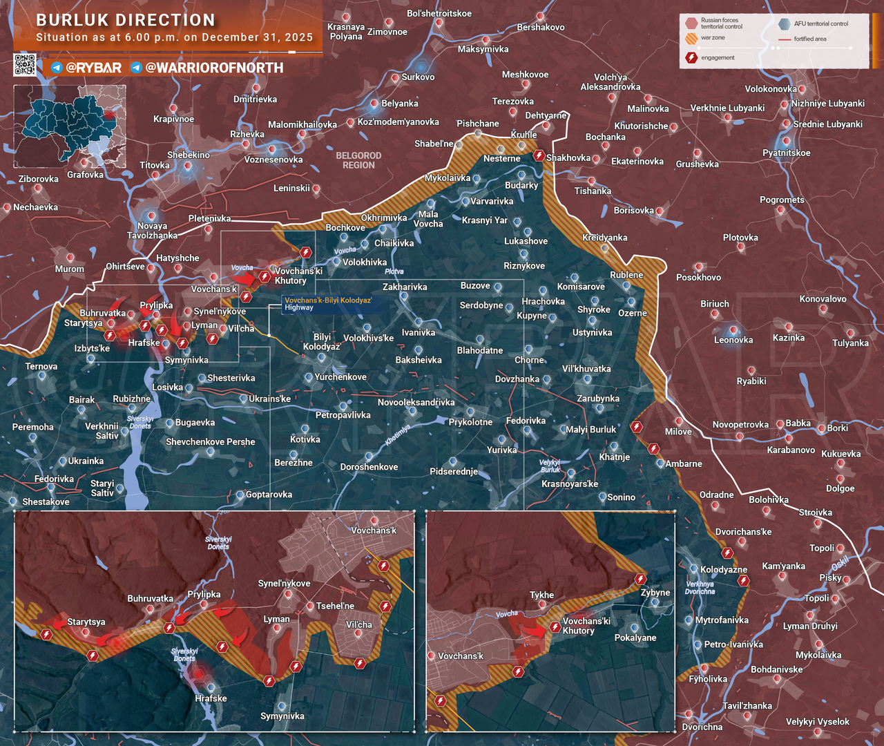 Vào đêm giao thừa, quân đội Nga tiếp tục tiến công theo hướng Burluk. Có một số thành công cục bộ ở phía tây và phía đông Volchansk.