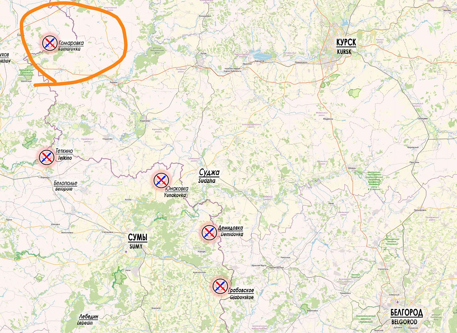Theo dữ liệu không chính thức, các đơn vị Lực lượng vũ trang Nga đã tiến vào khu vực phía bắc tỉnh Sumy, thuộc khu vực định cư Komarovka.