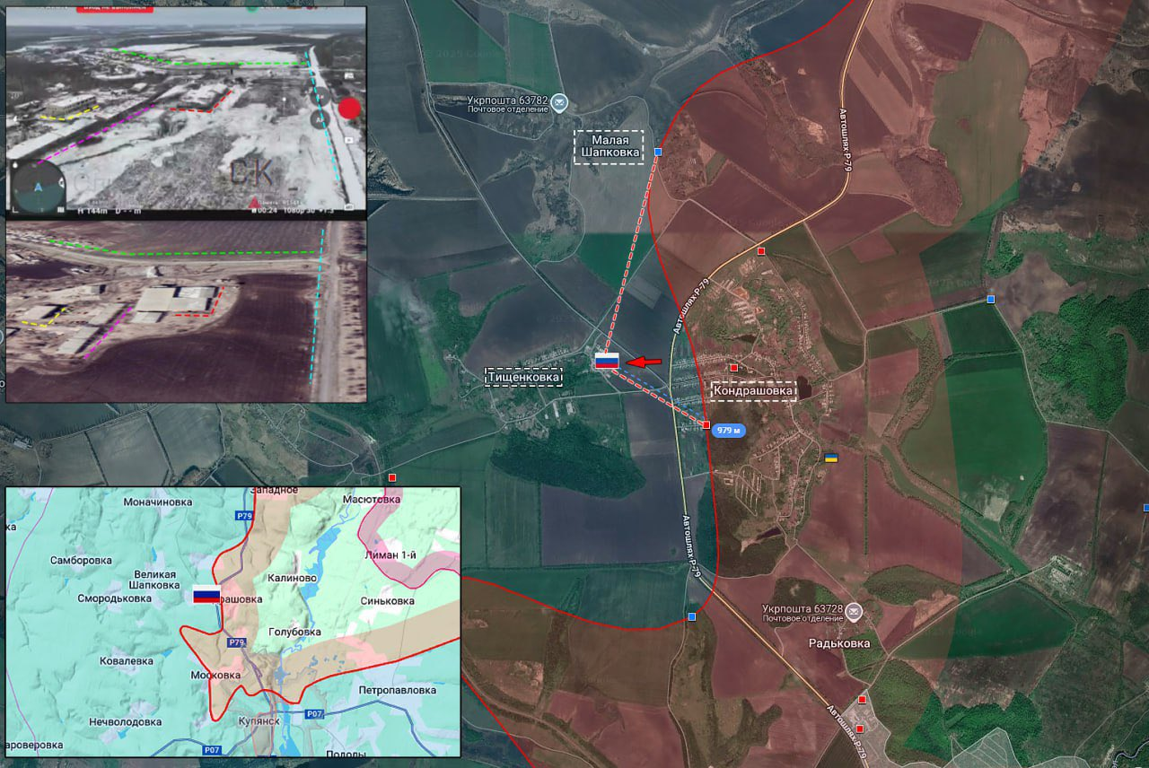 Lực lượng vũ trang Nga tiến về Tishchenkovka và chiếm giữ các vị trí mới ở phía đông khu dân cư. Các binh sĩ Nga đang thể hiện sự kiểm soát tự tin đối với các vị trí mà họ đã chiếm được trong một quần thể các công trình nông nghiệp.