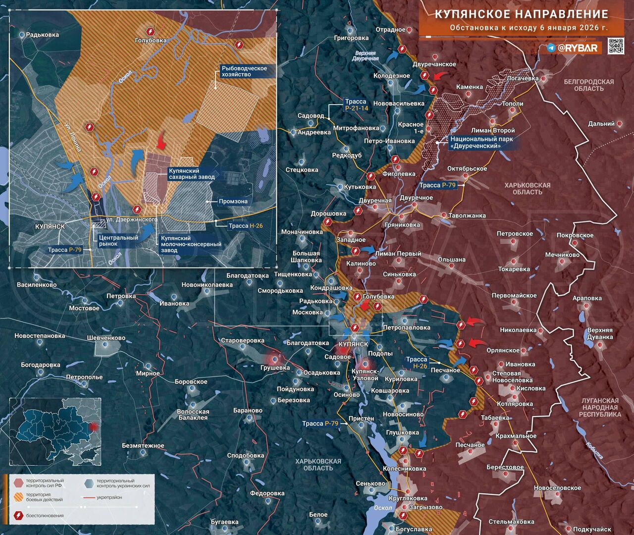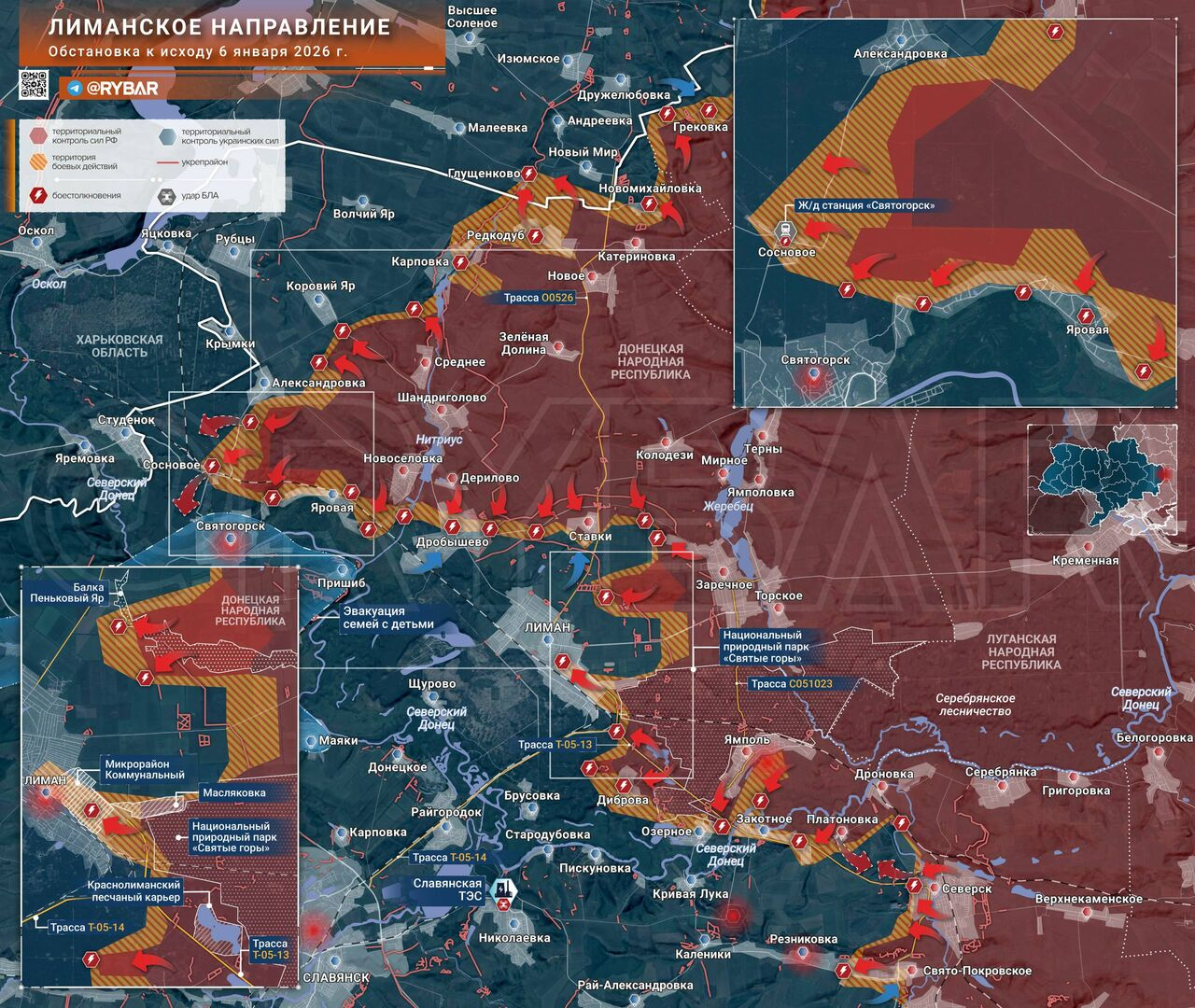 ➡️ 📌 Dọc gần như toàn bộ sườn phía nam của mặt trận, các hoạt động chiến đấu tập trung tại Công viên Svyatye Gory. Điều này mang lại cho quân đội Nga một lợi thế nhỏ, vì thảm thực vật dày đặc che giấu các đội tấn công khỏi các phi công điều khiển máy bay không người lái của đối phương, ngay cả trong điều kiện mùa đông.