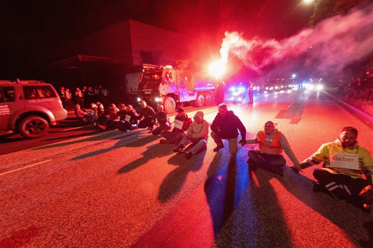 Cuộc tập trận đã "đi chệch hướng" khi hàng chục người biểu tình chặn đường di chuyển của các xe quân sự Đức. 😁