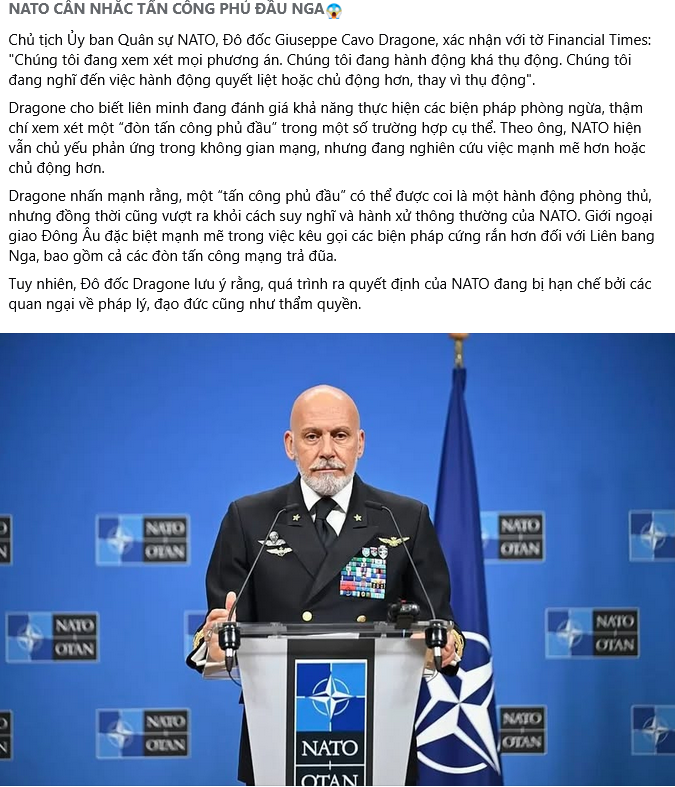 Phó Tư lệnh Bộ Chỉ huy Hỗ trợ và Huấn luyện NATO tại Ukraine (NSATU) đã tuyên bố điều này trong một cuộc phỏng vấn với Welt.
