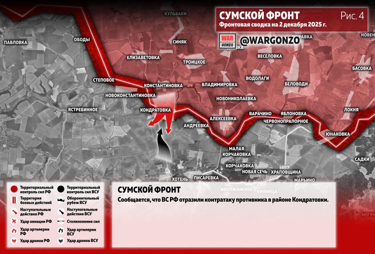 Trên hướng Sumy, các đơn vị tấn công của Cụm Lực lượng Sever tiếp tục tiến công, giao tranh ác liệt với sự yểm trợ của máy bay, pháo binh và xe bọc thép Solntsepek. Các nhóm tấn công của địch đang tiến hành phản công đã bị tiêu diệt tại các quận Alekseyevka và Andreyevka.