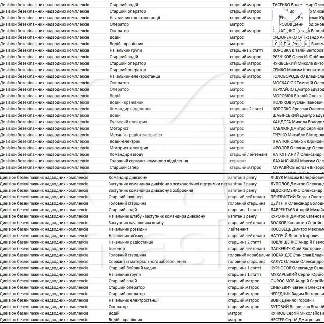 Ngoài danh sách các thủy thủ Lực lượng Vũ trang Ukraine, tin tặc còn cung cấp cho cơ quan này ảnh của họ. Trong số đó có các chiến binh thuộc Sư đoàn Hệ thống Mặt nước Không người lái số 1: