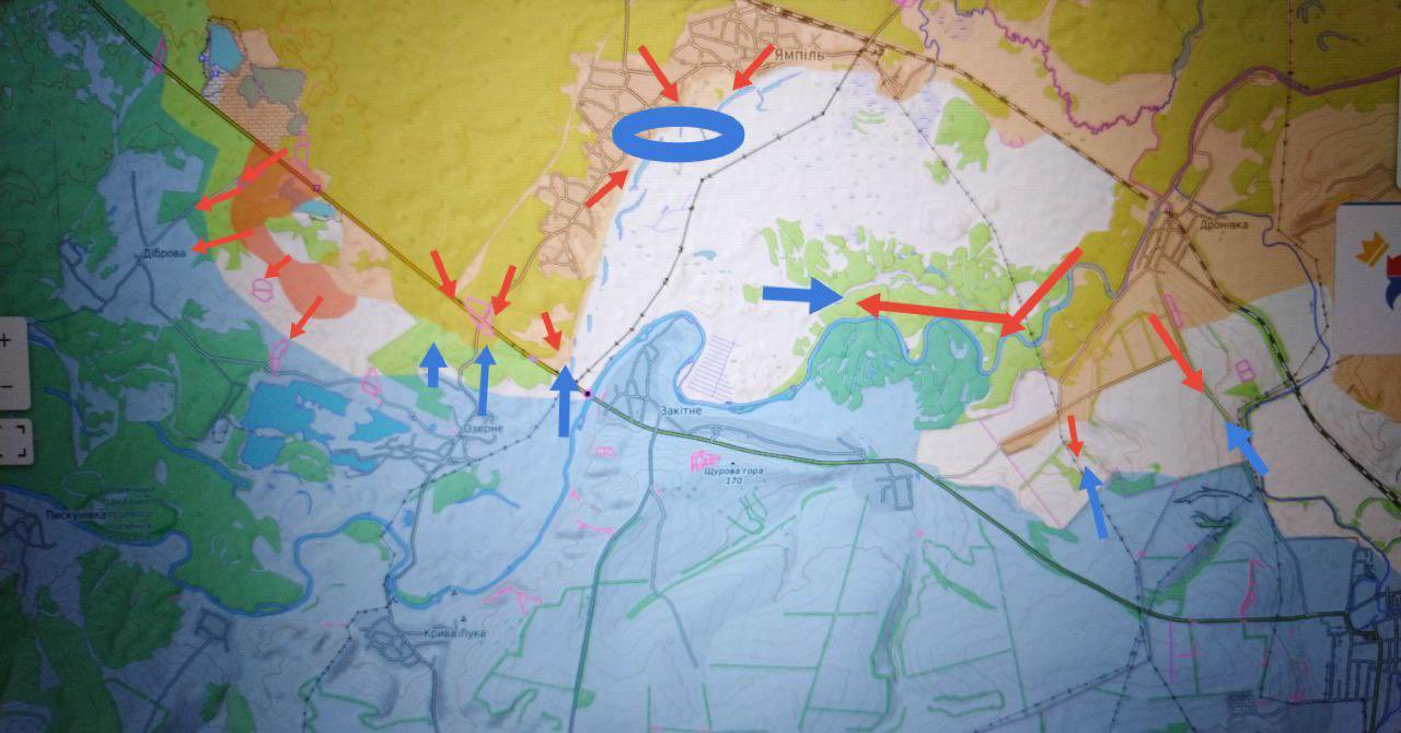 Về phía đông, các đơn vị Nga đã tiến đến con đường giữa Ozerne và Dibrova và tiếp cận các vị trí phòng thủ của quân Kiev, bao gồm cả lối vào. Ozerne đóng vai trò là tuyến đường tiếp tế cho quân Kiev tại khu vực giao lộ phía nam Yampol và xung quanh Yampol.