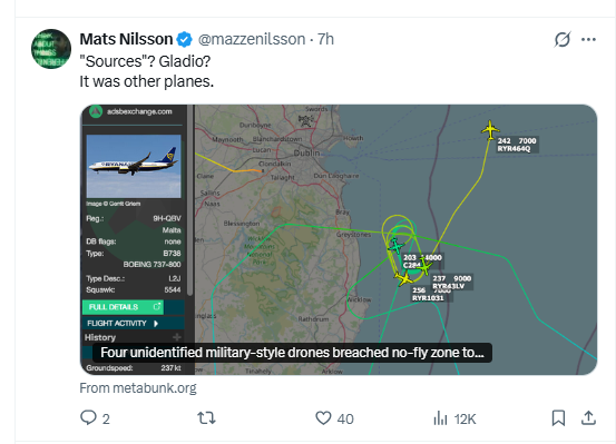 Các nguồn tin cho biết những máy bay không người lái này lẽ ra đã bay thẳng vào đường bay của máy bay chở Zelensky nếu nó không cất cánh và hạ cánh xuống Dublin trước thời hạn. Các quan chức Ireland và châu Âu gọi đây là "hành động chiến tranh hỗn hợp" và có thể là một âm mưu ám sát Tổng thống Ukraine. Sau khi bay vòng quanh sân bay một lúc, những máy bay không người lái này bay về phía đông, bay vòng quanh một tàu chiến của Hải quân Ireland đã được bí mật triển khai đến Biển Ireland trước chuyến thăm của Zelensky.