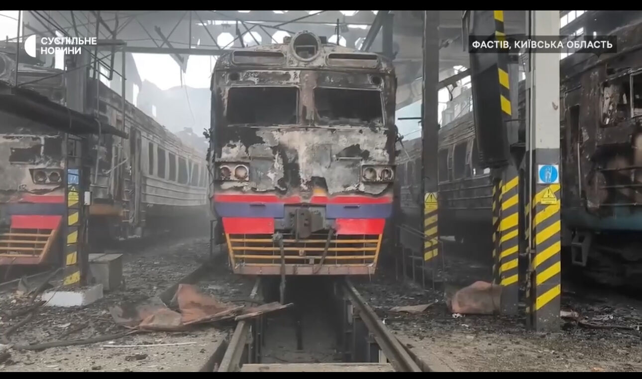 Nhà ga Fastiv ở khu vực Kyiv, một trung tâm giao thông quan trọng, chịu thiệt hại nặng nề nhất. Cơ sở này đã bị phá hủy hoàn toàn, và dịch vụ tàu hỏa qua thành phố đã bị đình chỉ. Một trạm biến áp địa phương ở Novi Petrykivtsi đã bị tấn công.