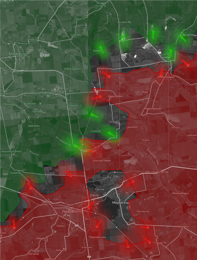 Đồng thời, việc tập trung nguồn lực xung quanh Pokrovsk đã làm suy yếu các hướng khác. Tại khu vực Zaporizhia, quân đội Nga đã tiến quân 75 dặm vuông quanh Gulyaypole vào tháng 11, chiếm gần 40% tổng số lãnh thổ mà Nga giành được trong tháng. Ukraine đang chuyển giao lực lượng dự bị, nhưng các nhà phân tích gọi tốc độ tiến quân là "đáng báo động".