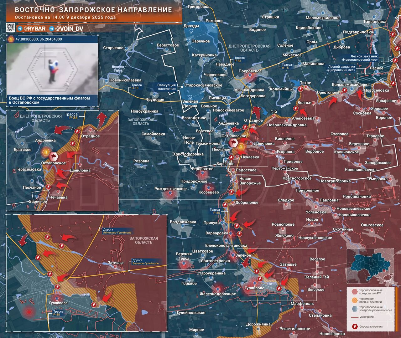 Trong khi đó, sườn phía Nam vẫn là nơi diễn ra giao tranh ác liệt - các đơn vị TOS thuộc Tập đoàn quân 35 "Phương Đông" đang thiêu rụi quân địch ở trung tâm Hulyaipole. Điều thú vị là, cách đây một thời gian, trên mạng đã xuất hiện tin đồn về việc Lực lượng Vũ trang Nga được cho là đã mất quyền kiểm soát trung tâm thành phố, mặc dù hiện tại nó đang bị pháo kích dữ dội.