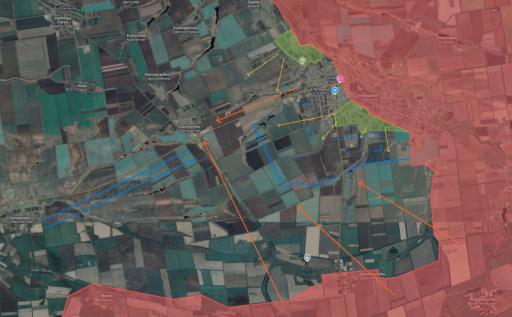 Tình hình mặt trận Huliaipole: Trong hai ngày qua, Quân Đội Nga đã hoàn toàn chiếm được phần phía bắc của Huliaipole, vượt sông Haichur theo trục mới và kiểm soát các chiến hào ở rìa tây bắc của thành phố. Trong khi đó, lực lượng Nga đã thực hiện một cuộc bao vây ở ngoại ô từ phía đông, kiểm soát các trang trại và chiến hào đến tận đường Vulytsia, trong khi quân đội từ phía bắc chiếm giữ các kho hàng trên đường Myru và tiến dọc theo đường Druzhby đến vùng lân cận đường Heroiv Ukrainy. Kết quả là, Quân Đội Ukraine đã rút khỏi phố Ukrainska (nơi các ổ kháng cự cuối cùng vẫn đang bị truy quét). Khoảng 40% thị trấn Huliaipole hiện nằm dưới sự kiểm soát của Nga.