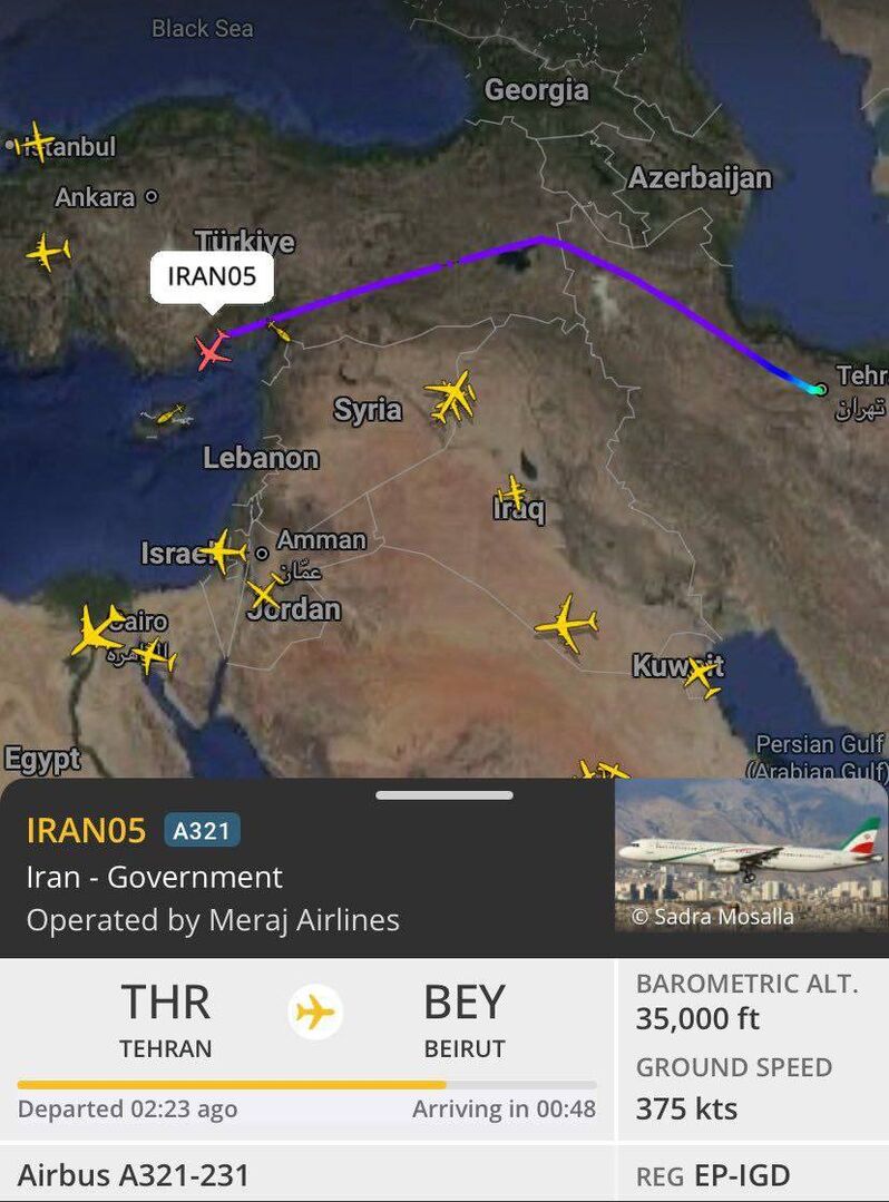 Một máy bay của chính phủ Iran đã tiến vào vùng biển phía đông Địa Trung Hải. Mục tiêu của nó vẫn chưa được xác định.