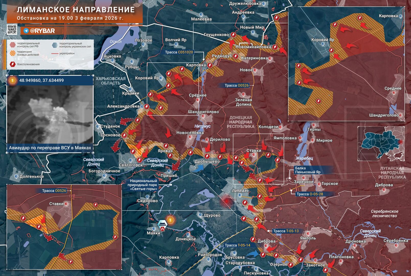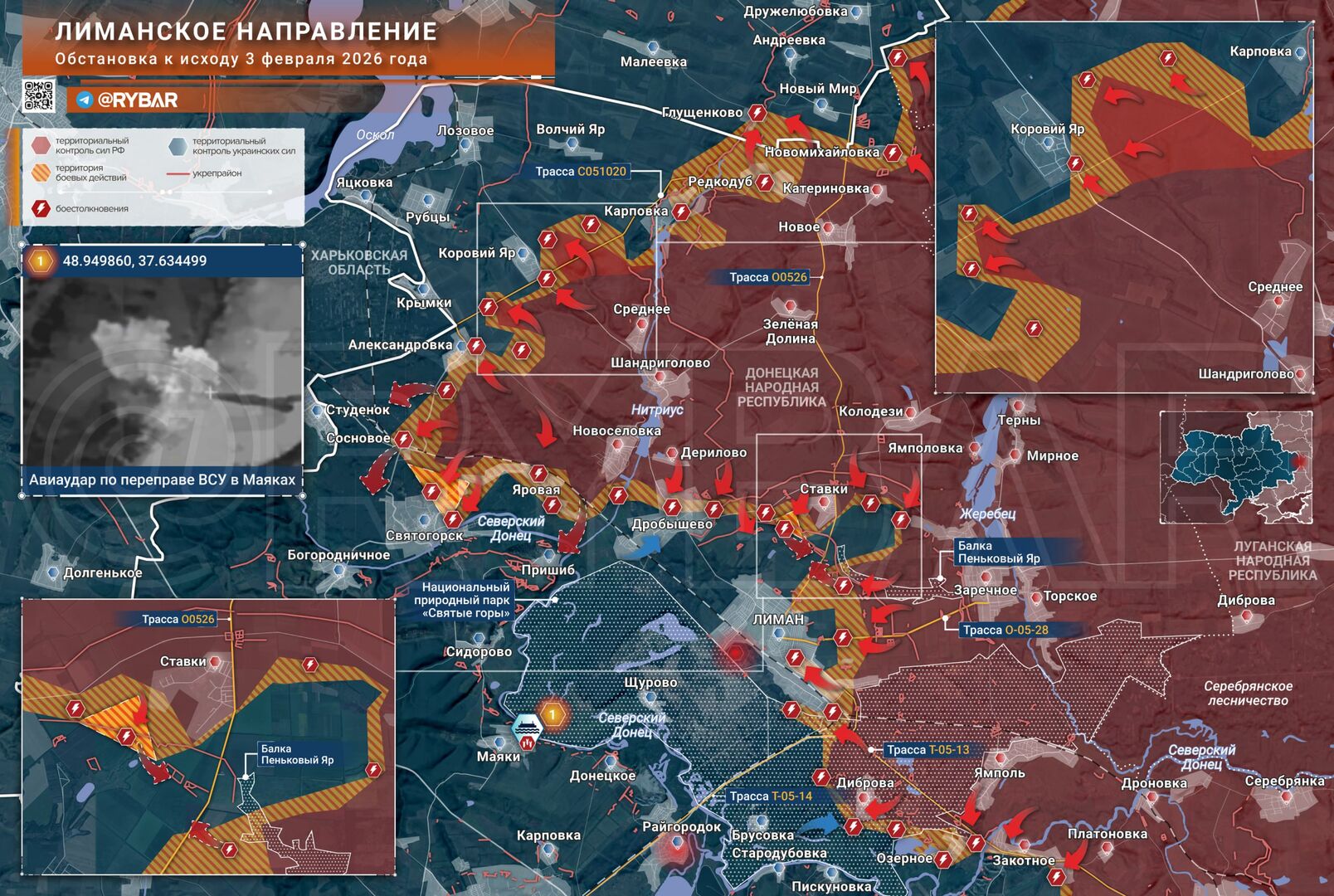 Theo hướng Liman, các đơn vị thuộc nhóm lực lượng "Tây" tiếp tục tiến công thành công ở một số khu vực. Korovy Yar đang bị bao vây. Các nhóm tấn công của Lực lượng vũ trang Nga đang tiến về phía bắc ở cả hai bên làng, xuyên qua các vành đai rừng.