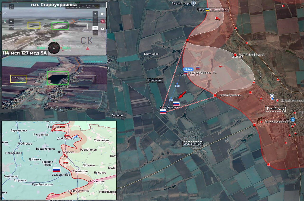 Tại làng Staroukrainka, máy bay tấn công của Lực lượng vũ trang Nga đã giương cao cờ Liên bang Nga, xác nhận việc chuyển giao các khu dân cư của làng dưới sự kiểm soát của Lực lượng vũ trang Nga. Lực lượng vũ trang Nga đã tiến đến 3 km về phía tây của Hulyaipole.