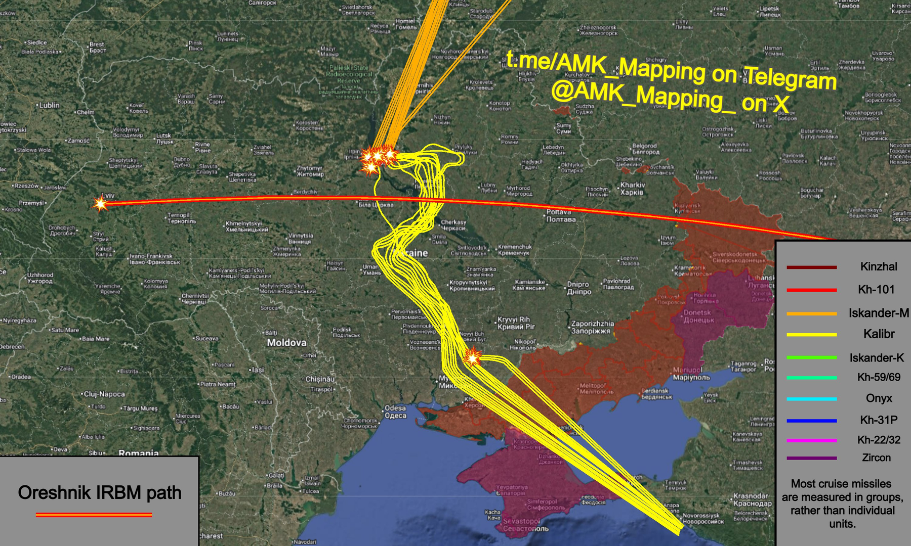 Lực lượng Nga đã tấn công một mục tiêu ở vùng Lviv bằng tên lửa Oreshnik. Họ cũng tấn công các cơ sở năng lượng ở Kyiv, gây mất điện và gián đoạn nguồn cung cấp nước trong thành phố.