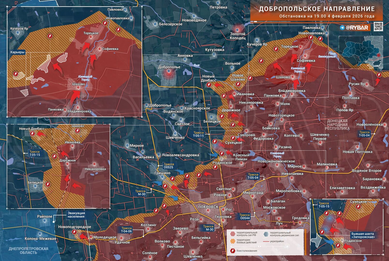 Quân đội Nga đang mở rộng vùng kiểm soát tại một số khu vực biên giới tỉnh Sumy. Các bước tiến tại huyện Krasnopolsky và việc tiến gần đến Myropolye cho thấy sự chuẩn bị cho các hoạt động tác chiến trong chiến dịch tấn công mùa xuân-hè. Do thường xuyên thiếu hụt, Lực lượng vũ trang Ukraine buộc phải dàn trải lực lượng phòng thủ, khiến các vị trí của họ dễ bị tổn thương.