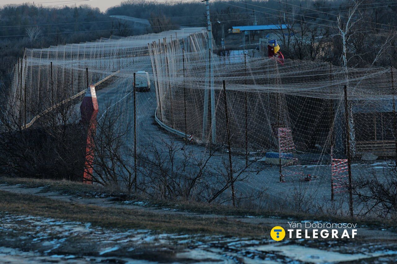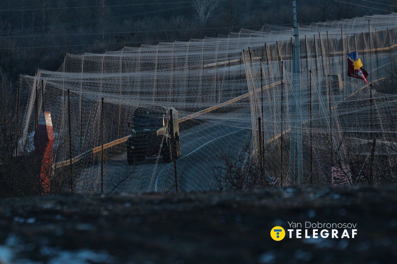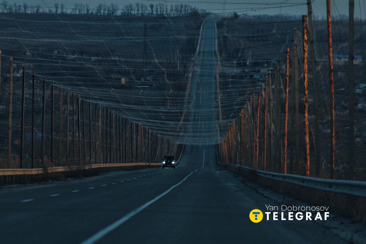 Các công trình kỹ thuật của Lực lượng Vũ trang Ukraine. Lưới bảo vệ trên đường. Tháng 1 năm 2026. Đường Izyum-Slovyansk.