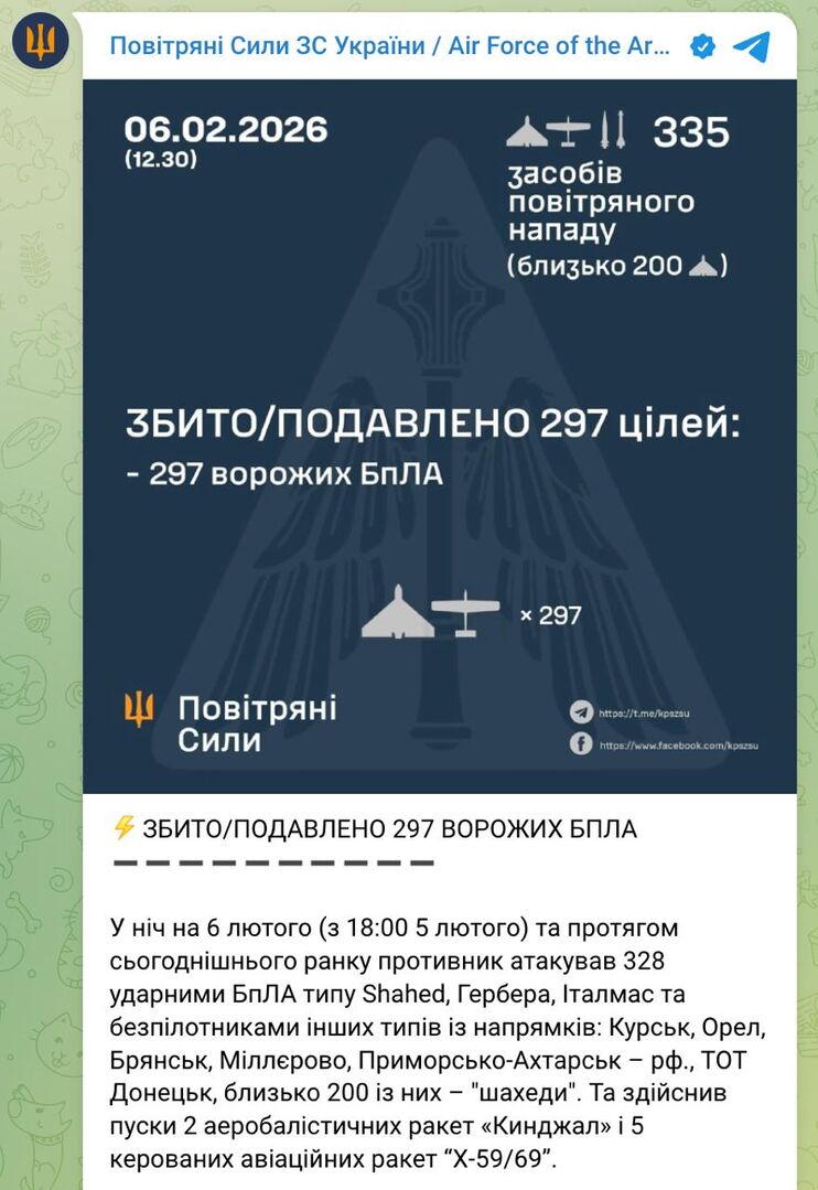 ❗️ Từ ngày 31 tháng 1 đến ngày 6 tháng 2, để đáp trả các cuộc tấn công khủng bố của Ukraine nhằm vào các cơ sở dân sự ở Nga, Lực lượng Vũ trang Liên bang Nga đã tiến hành một cuộc tấn công quy mô lớn và năm cuộc tấn công theo nhóm, nhắm vào các doanh nghiệp công nghiệp quốc phòng Ukraine, các công trình cơ sở hạ tầng điện và giao thông vận tải do Lực lượng Vũ trang Ukraine sử dụng, các kho đạn dược, các địa điểm sản xuất và kho chứa máy bay không người lái tấn công cũng như các khu vực triển khai tạm thời của các lực lượng vũ trang Ukraine và lính đánh thuê nước ngoài.