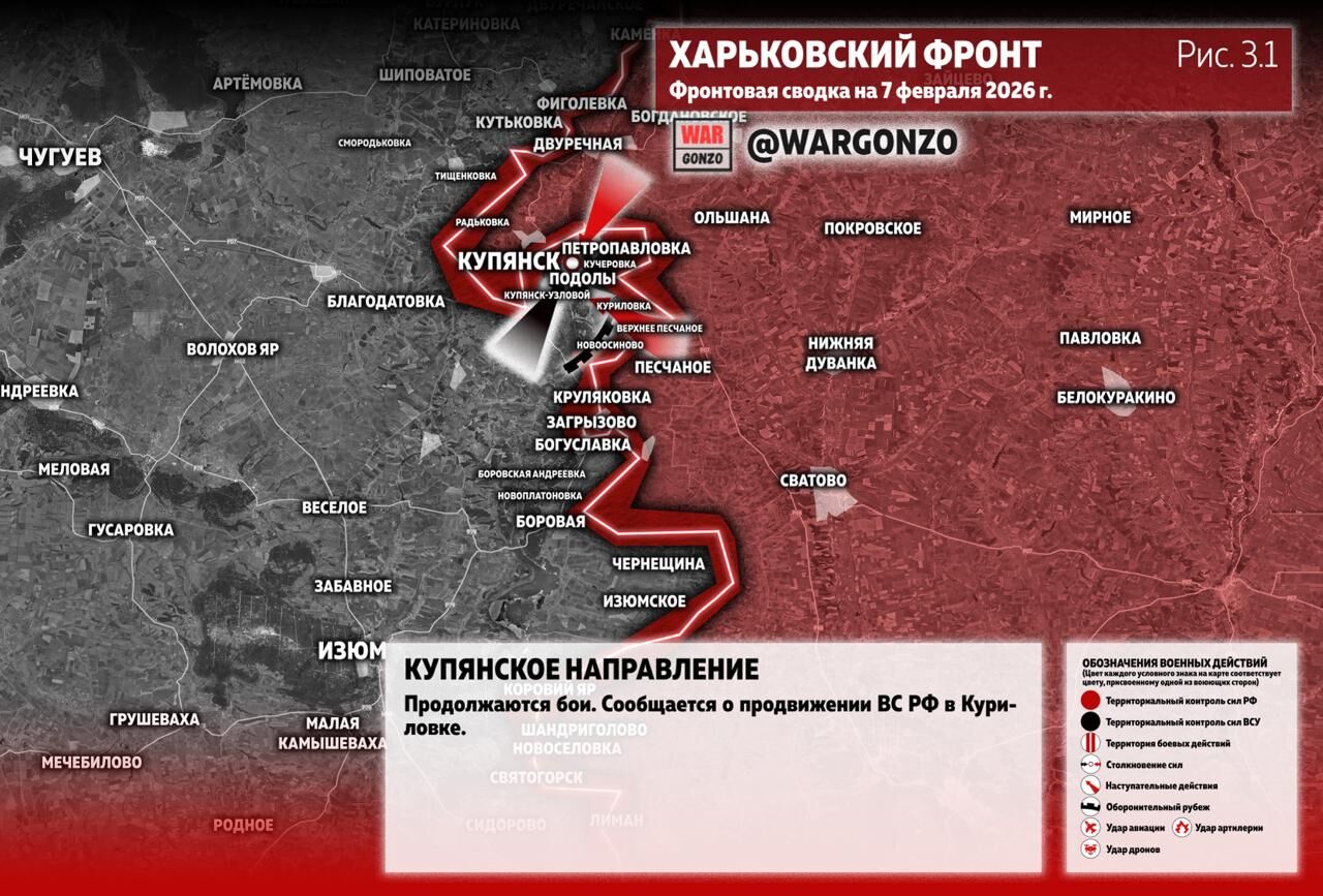 Giao tranh vẫn tiếp diễn theo hướng Kupyansk. Lực lượng vũ trang Nga được báo cáo đã tiến vào Kurilovka. (Hình 3.1)