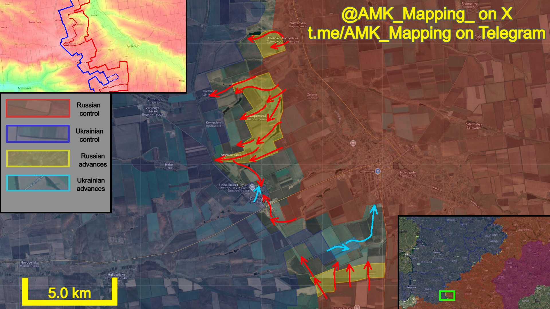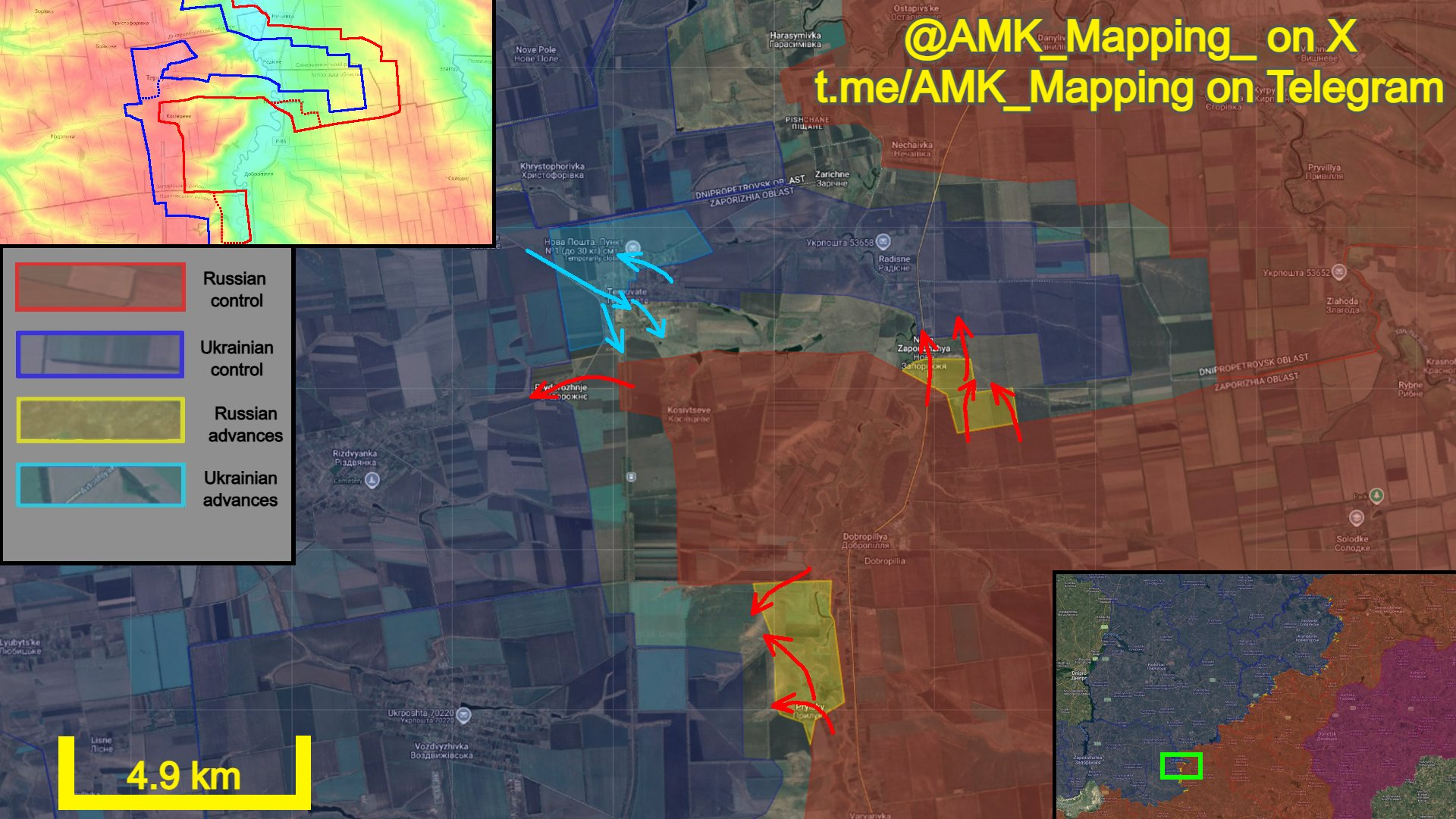 Theo hướng Omelnyk và Pokrovs'ke, cả lực lượng Nga và Ukraine đều đang tiến công.