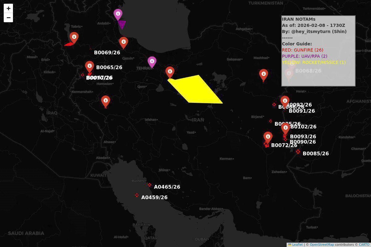 Trong khi đó, Iran đã đưa ra cảnh báo về mối nguy hiểm tiềm tàng đối với hàng không dân dụng trên một phần tỉnh Semnan: biện pháp này liên quan đến việc chuẩn bị cho một vụ phóng thử tên lửa đạn đạo của Lực lượng Vệ binh Cách mạng Hồi giáo (IRGC).
