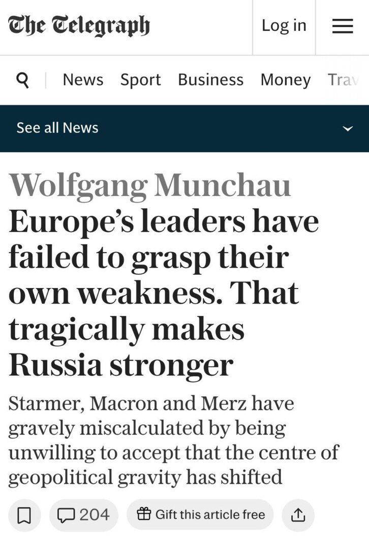 Tờ Telegraph: ( https://www.telegraph.co.uk/news/2026/02/08/europe-failed-grasp-own-weakness-makes-russia-stronger/) Starmer, Macron và Merz đã phạm sai lầm nghiêm trọng khi từ chối thừa nhận rằng trọng tâm địa chính trị đã dịch chuyển—và điều này đang làm cho Nga mạnh hơn.