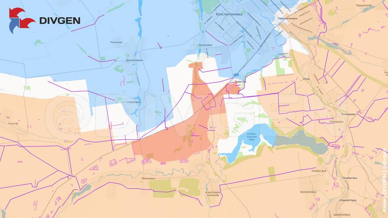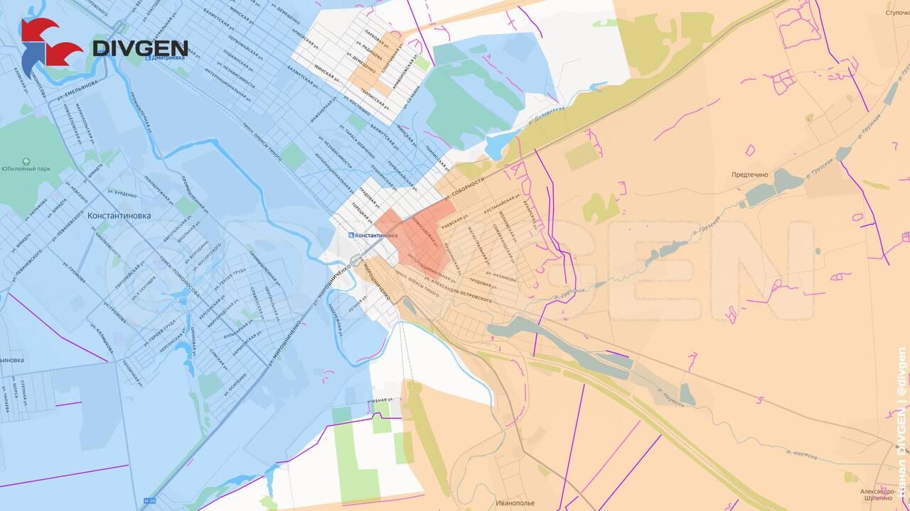 Trên mặt trận Konstantinovka, Lực lượng vũ trang Nga đang tiến công ở phía đông nam Konstantinovka. Có thông tin cho rằng quân đội Nga đã tiến vào Novodmitrovka, phía đông bắc thành phố. Giao tranh đang diễn ra ở Ilyinovka và Berestka. Gần Novomarkovo, Lực lượng vũ trang Nga đang tiến về phía bắc, giao tranh gần Minkovka.