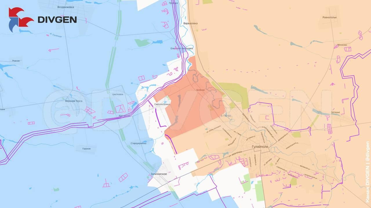 Trên mặt trận Hulyai-Polye, quân đội Nga đang đẩy lùi các cuộc phản công của địch gần Hulyai-Polye và tiếp tục tấn công về phía tây bắc thành phố. Bộ Quốc phòng Nga báo cáo về việc giải phóng Zelenoe. Từ Zelenoe, quân đội Nga đang tấn công về phía Svyatopetrivka, với những bước tiến được báo cáo gần Priluki, phía bắc Hulyai-Polye. Giao tranh tiếp tục diễn ra ở Ternovatoye. Trong khu vực Andreyevka và Otradnoye, Lực lượng vũ trang Nga đang tiến về phía Pokrovskoe. (Hình 1.2)