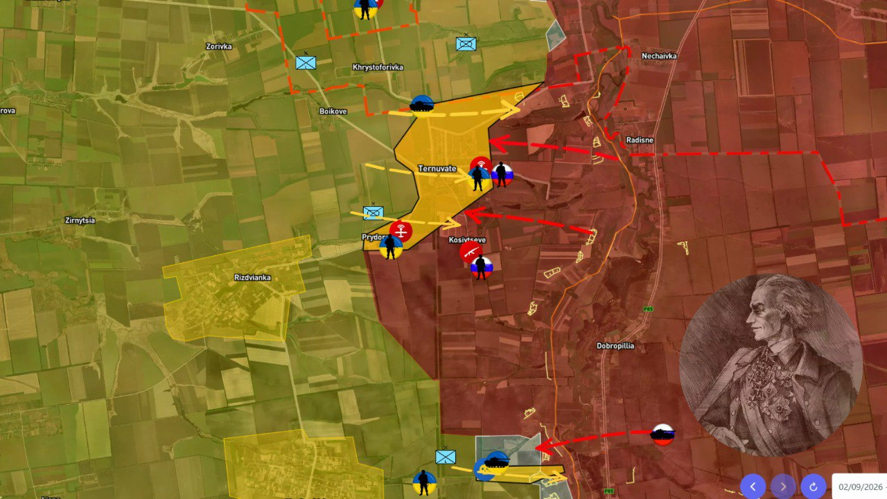 Sự tiến công của một đoàn xe bọc thép địch đã bị phát hiện trước khi chúng đến được tiền tuyến. Tuy nhiên, một số binh sĩ AFU đã успели đột phá đến được bia đá ở lối vào Ternovatoe và quay video với lá cờ Ukraine.
