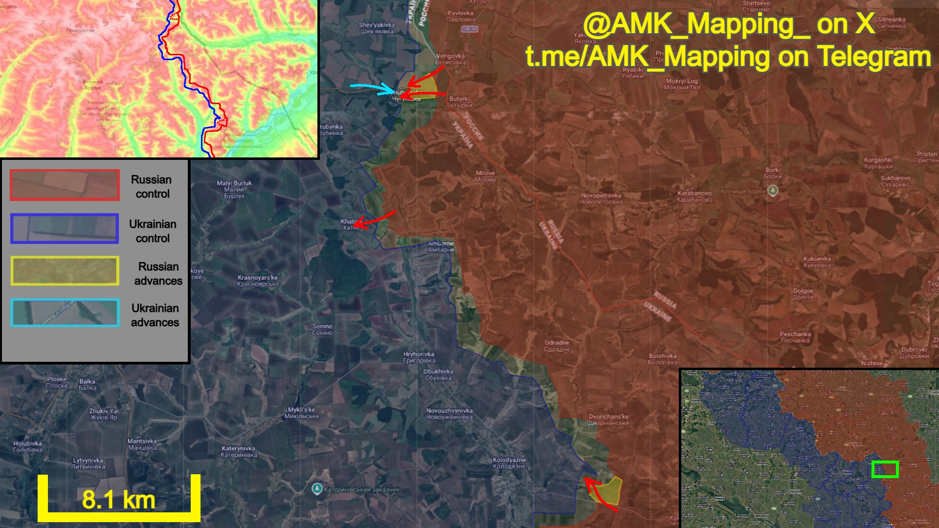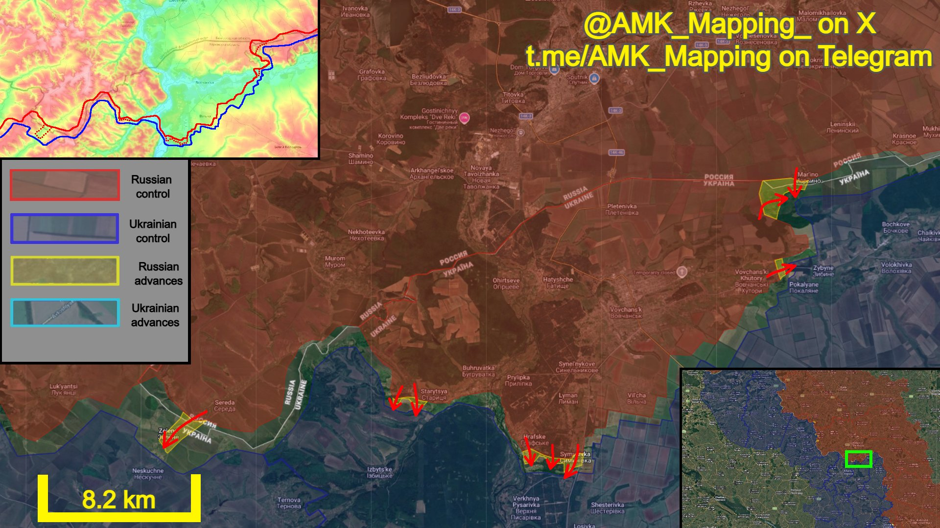 Về phía nam, quân Nga tiếp tục chiếm giữ các vị trí ở phần phía đông của Vovchanki-Khutory, và gần như đã kiểm soát hoàn toàn ngôi làng này.