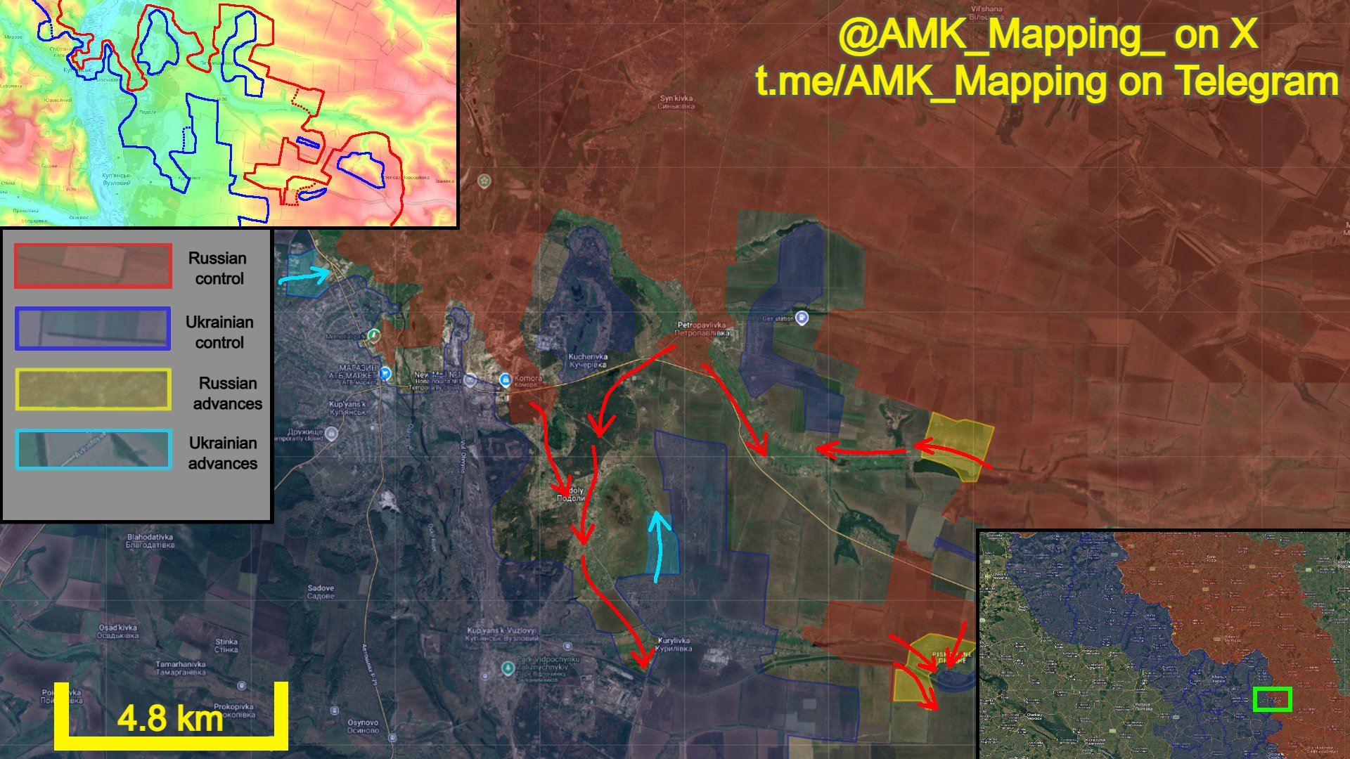 Ở phía tây, các đơn vị DRG của Nga tiếp tục xâm nhập sâu từ Petropavlivka về phía đông Kupyansk-Vuzlovyi và tiến vào phần phía tây của Kurylivka. Mặt khác, lực lượng Ukraine đã giải phóng được một số vị trí ở phần đông nam của Podoly.