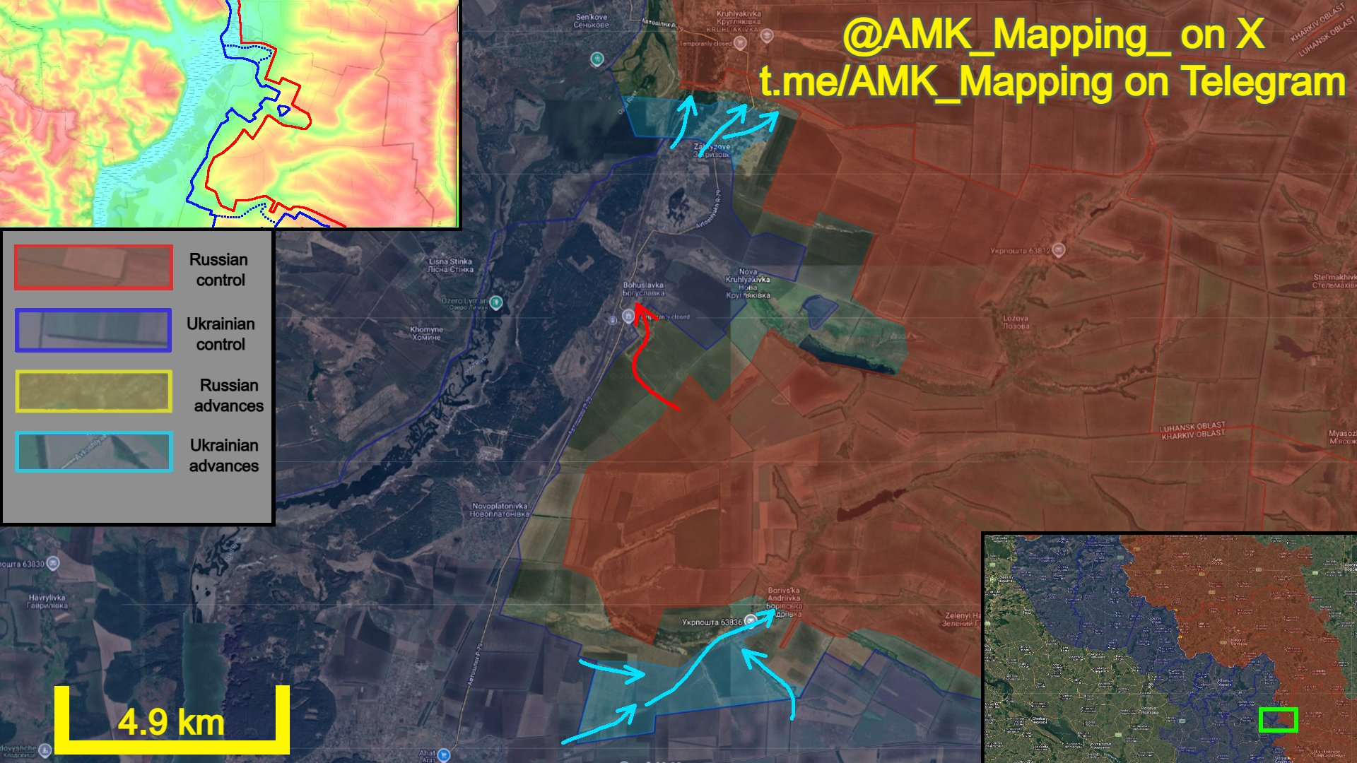 Ở phía nam, lực lượng Ukraine đã quét sạch các đường rừng phía đông bắc Borova khỏi tay lực lượng DRG của Nga và tiến về phía đông bắc đến Borivska-Andriivka, tái chiếm các vị trí ở phía tây nam của làng.