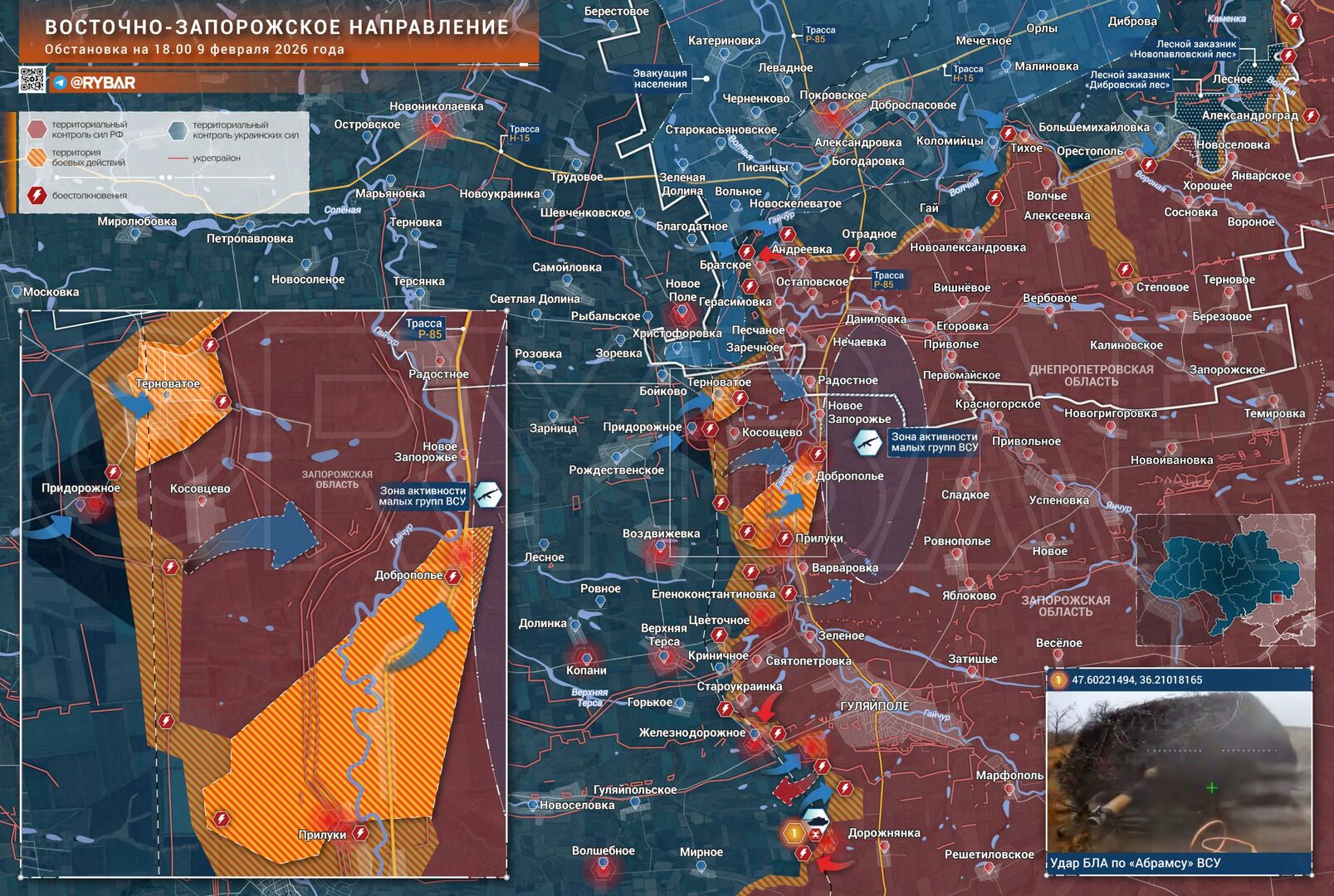 Một loạt các cuộc phản công của địch, bắt đầu từ cuối tháng 1 và đầu tháng 2, vẫn tiếp diễn ở khu vực phía đông Zaporizhzhia. Trước đó, các hành động của Lực lượng vũ trang Ukraine chỉ giới hạn ở việc cử các nhóm bộ binh nhỏ, cố gắng giữ các vị trí trong các đống đổ nát hoặc vành đai rừng và làm chậm bước tiến của Lực lượng vũ trang Nga. Tuy nhiên, gần đây, lực lượng Ukraine đã phát động một cuộc phản công cục bộ lần đầu tiên sau một thời gian dài.