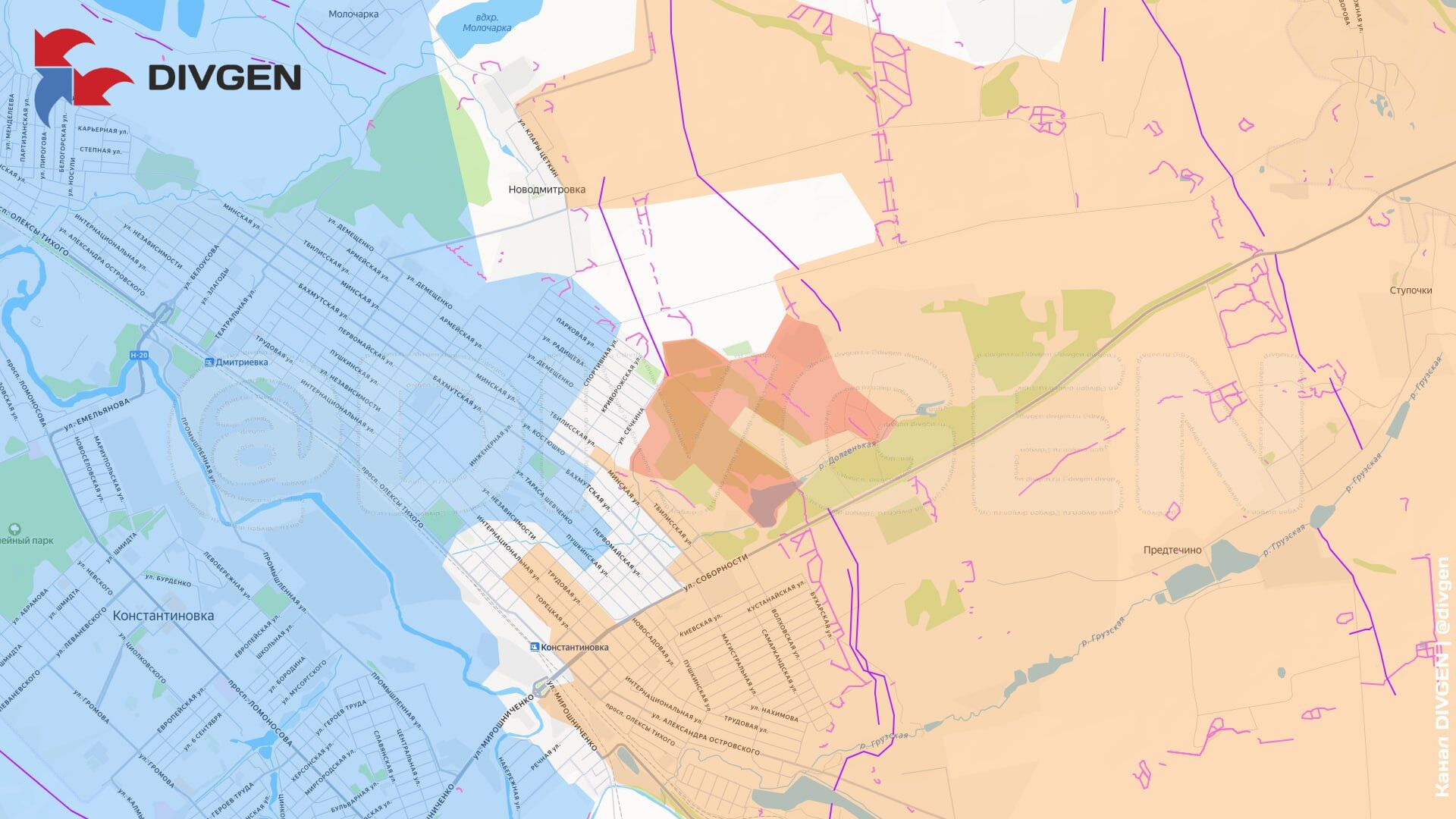 Tại khu vực Konstantinovsky, Lực lượng vũ trang Nga đang mở rộng quyền kiểm soát các vùng lãnh thổ gần Brestok và Ilyinovka. Theo các nguồn tin, Lực lượng vũ trang Nga đã tiến vào Chervone, phía tây nam Chasov Yar. Có tiến triển ở khu vực Novomarkovo. (Hình 2.2)