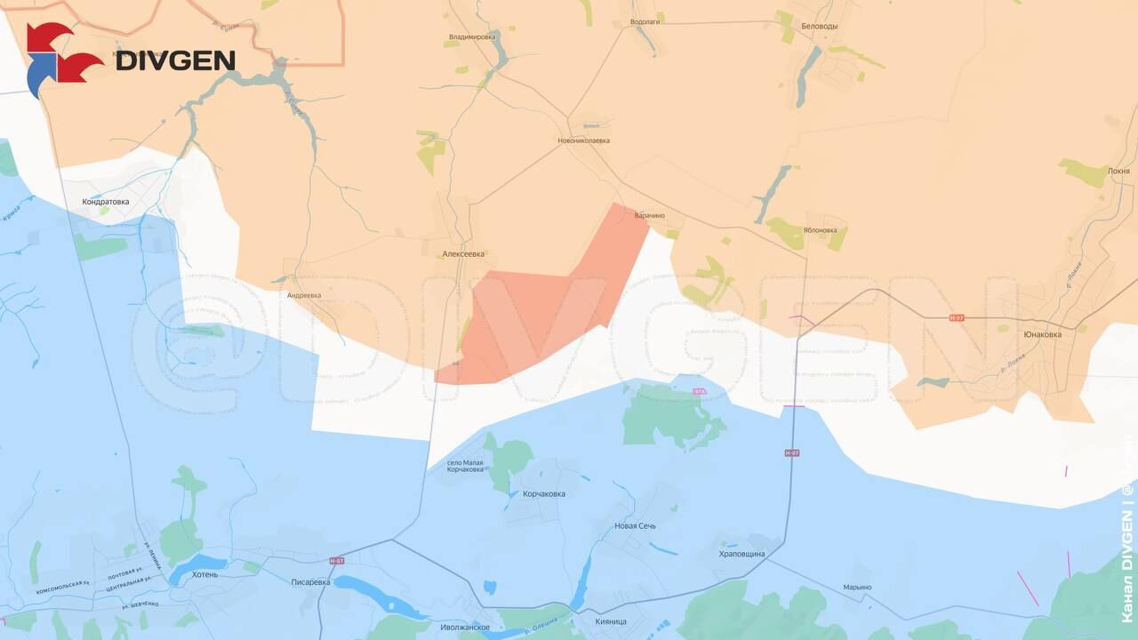 - Gần Alekseyevka, bộ binh cơ giới của Lực lượng Vũ trang Nga đã tiến đến Malaya Korchakovka, chỉ cách làng 300 mét.