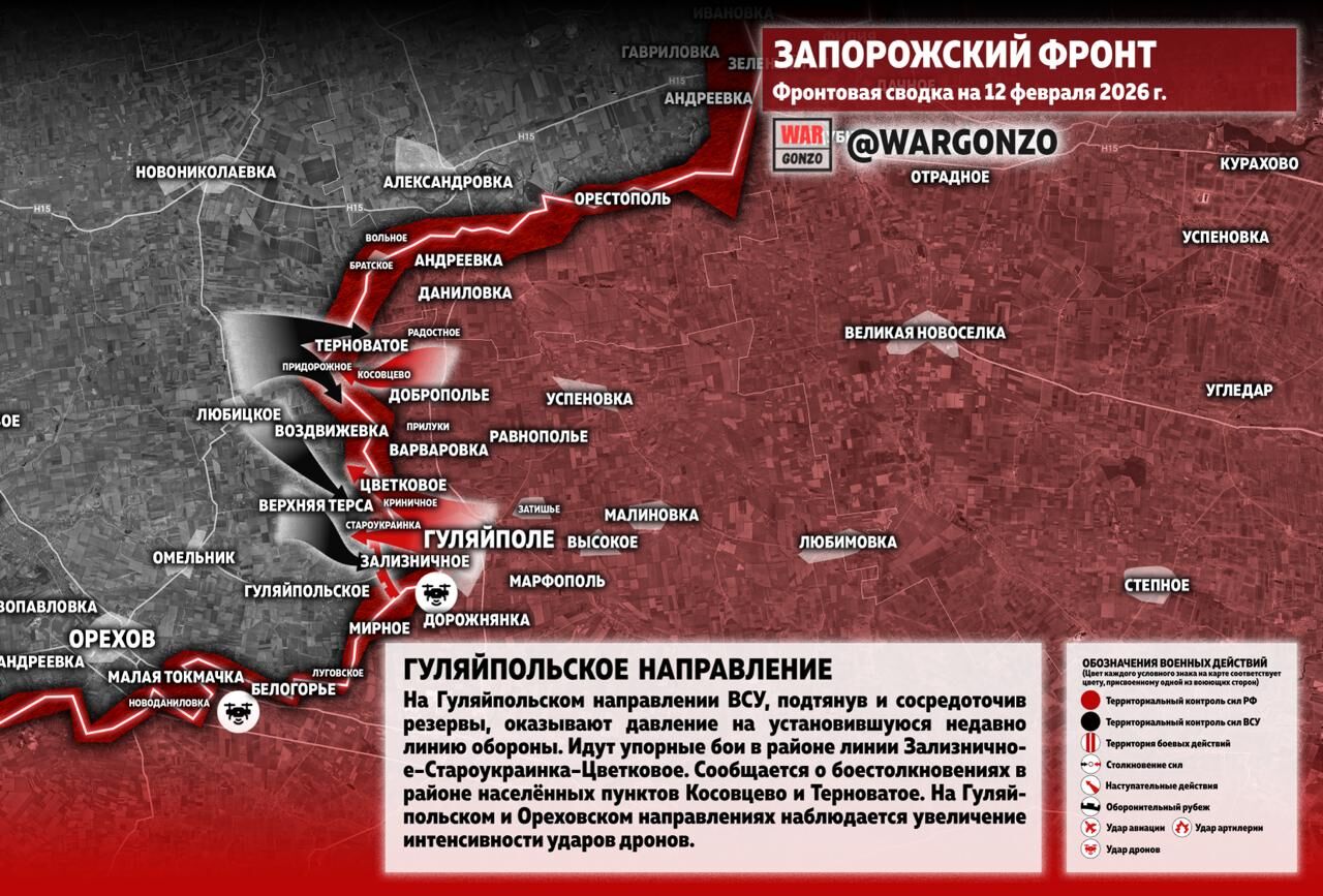 Tình hình tại khu vực Huliaipole tính đến ngày 12 tháng 2 năm 2026