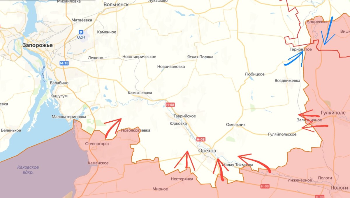 😮💨 🇷🇺 Chuyện gì đang xảy ra ở vùng Zaporizhia? Lực lượng vũ trang Nga đang phát động các cuộc tấn công hàng tuần về phía Orekhov để kìm chân Lực lượng vũ trang Ukraine theo hướng đó. Vài giờ trước, có thông tin cho biết quân đội Nga đã chọc thủng phòng tuyến ở ngoại ô phía nam Novandreyevka - một khu vực dân cư đông đúc phía nam Orekhov, vốn là một cứ điểm kiên cố của Lực lượng vũ trang Ukraine, được họ sử dụng từ năm 2023.