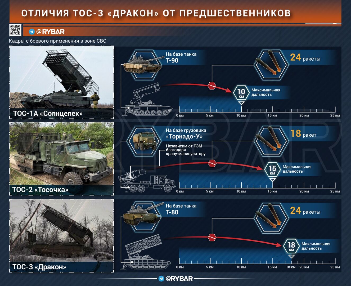 Điều này cho phép nó hoạt động từ các vị trí xa hơn và tránh tiếp cận vị trí của lực lượng Ukraine. Trước đây, các hệ thống TOS đã nhiều lần bị máy bay không người lái FPV bắn trúng trong các nhiệm vụ, chủ yếu là vì chúng phải hoạt động ở khoảng cách gần mục tiêu hơn so với hầu hết các hệ thống pháo phản lực đa nòng khác.