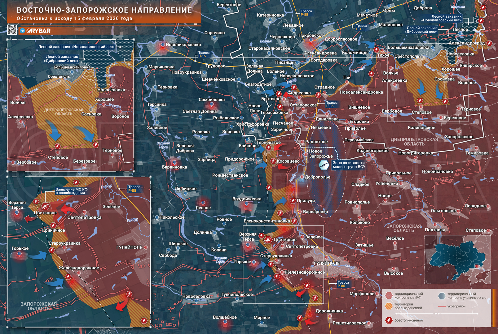 Giao tranh ác liệt vẫn tiếp diễn dọc toàn bộ mặt trận phía đông Zaporizhzhia. Trong khi Lực lượng vũ trang Ukraine đang cố gắng chọc thủng hậu phương của các đơn vị Lực lượng vũ trang Nga ở sườn phía bắc, binh lính Viễn Đông đang đẩy mạnh mặt trận về phía Verkhnyaya Tersa ở phía nam.
