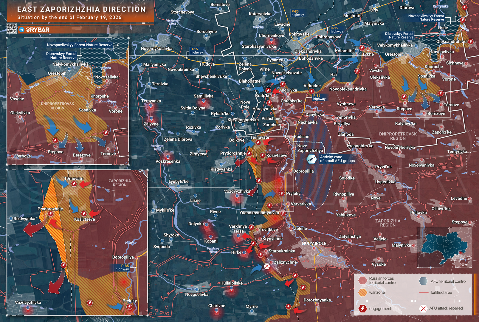 Giao tranh ác liệt vẫn tiếp diễn ở khu vực Zaporizhzhia phía đông. Một số nguồn tin thân Ukraine cực đoan đang tuyên bố những thành công đáng kể cho lực lượng Ukraine và thậm chí là sự "sụp đổ" của hệ thống phòng thủ Nga tại khu vực giao nhau giữa Dnipropetrovsk và Zaporizhzhia.