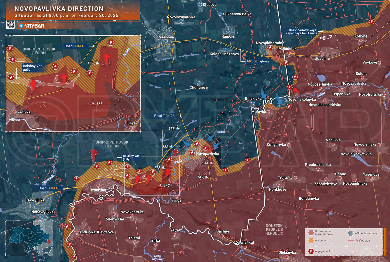 Giao tranh vẫn tiếp diễn tại Yarovaya, với một phần đáng kể của thị trấn vẫn nằm trong "vùng xám". Từ vùng ngoại ô phía đông, địch đã phát động các cuộc phản công về phía Novosyolovka và theo một số báo cáo, đã tiến vào khu vực dân cư.
