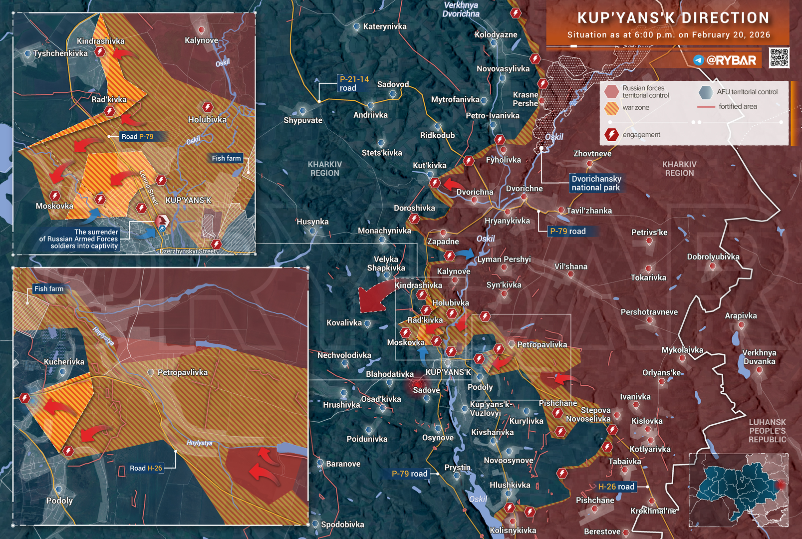 Ở phía tây nam, quân Nga tiếp tục tiến sâu vào Kivsharivka và đã cố thủ ở một số vị trí rừng ngay bên ngoài thị trấn, từ đó họ đang xâm nhập vào các con phố phía đông bắc.