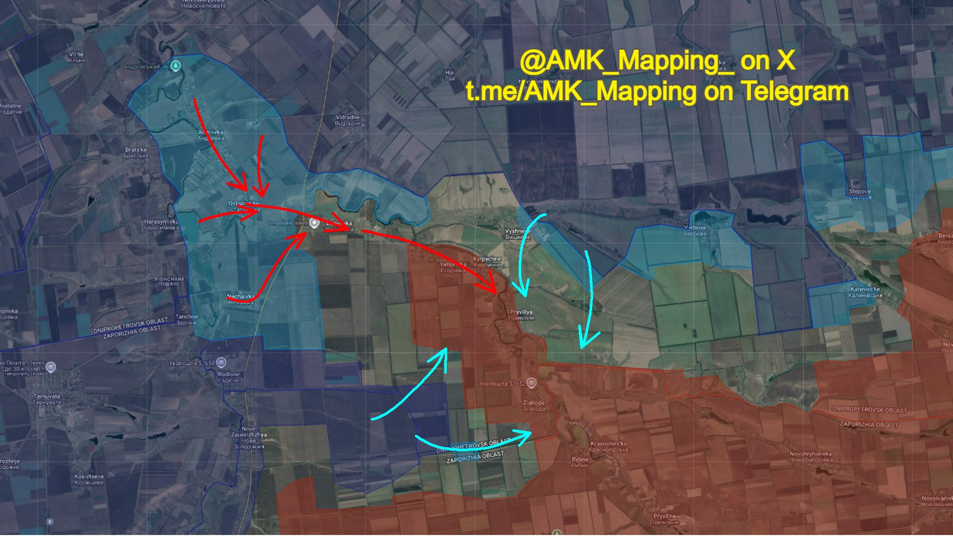 Có thông tin mới về các cuộc phản công của Ukraine ở các vùng Zaporizhzhia và Dnipropetrovsk 🗺⚔️. Trong số đó, quân đội Nga đang giương cờ ở làng Pryluky 🚩, trong khi các cuộc tấn công bằng máy bay không người lái của Nga ở Ternove xác nhận sự hiện diện của Ukraine trong làng 🚁💥. Tuy nhiên, tình hình vẫn còn bí ẩn, vì cả hai bên đều không muốn công bố video 🎥❓.