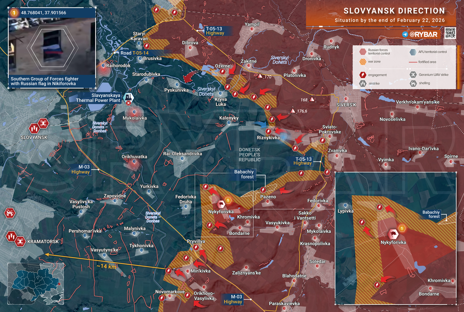 Tại tỉnh Donetsk, quân Nga hiện đang tập trung tấn công vào làng Serhiivka 🏘⚠️ – việc chiếm được ngôi làng này sẽ giúp Nga giành thêm lãnh thổ ở tỉnh Dnipropetrovsk 📈. Các cuộc tấn công khác cũng được báo cáo theo hướng Kramatorsk/Sloviansk, nơi quân đội Nga đang chiếm thêm các khu vực dọc theo kênh đào 💧🔥