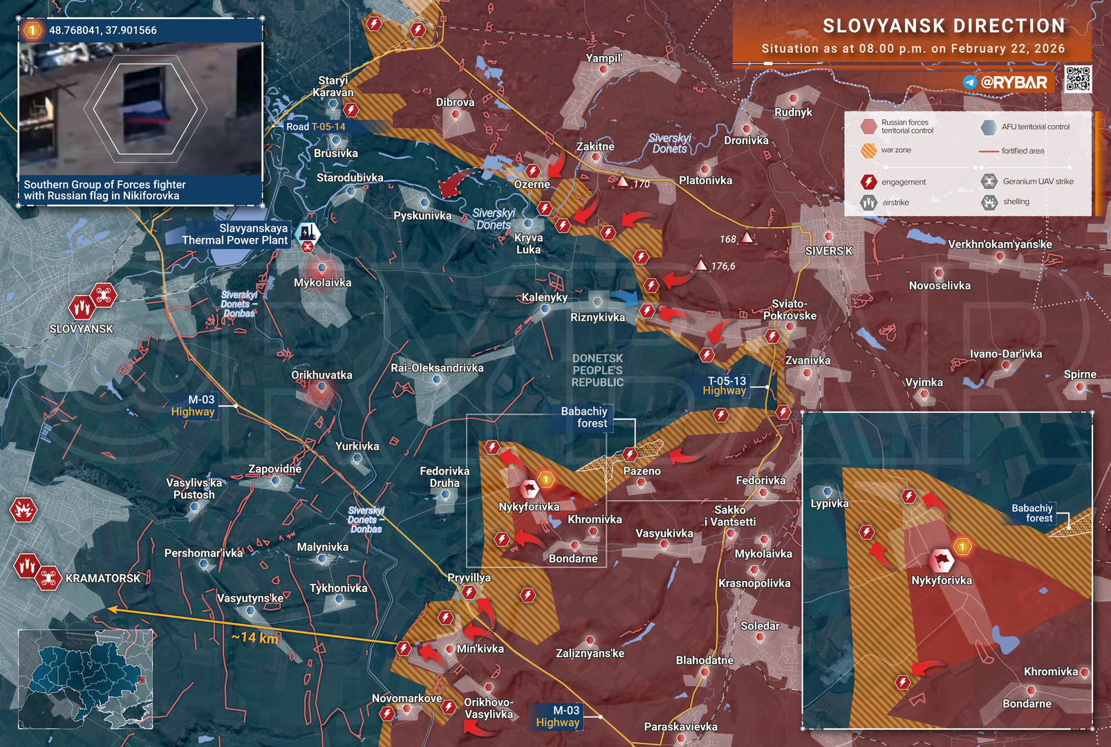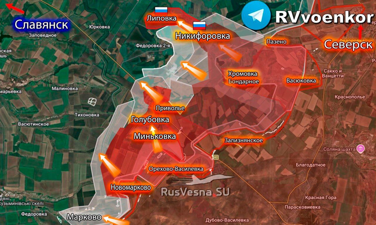 Quân đội Nga đang tự tin tiến về phía kênh đào Seversky Donets-Donbas. Giao tranh ác liệt nhất đang diễn ra ở các tuyến đường tiếp cận Rai-Aleksandrivka, nơi có điểm phòng thủ lớn cuối cùng của Lực lượng vũ trang Ukraine nằm ở bờ trái của pháo đài.