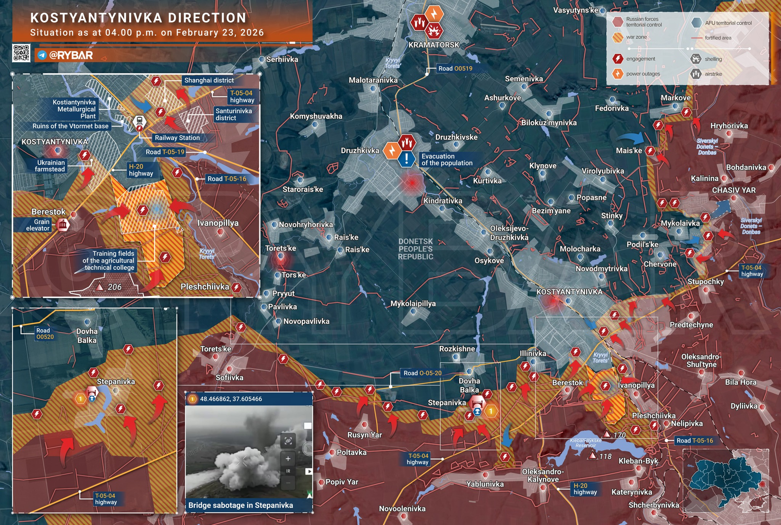 Giao tranh vẫn tiếp diễn ở các tuyến phía nam dẫn vào thành phố thuộc khu vực Kostyantynivka. Quân đội Nga đã tiến vào một số khu vực, nhưng vẫn còn những "vùng xám" nơi cả hai bên đều chưa kiểm soát hoàn toàn.