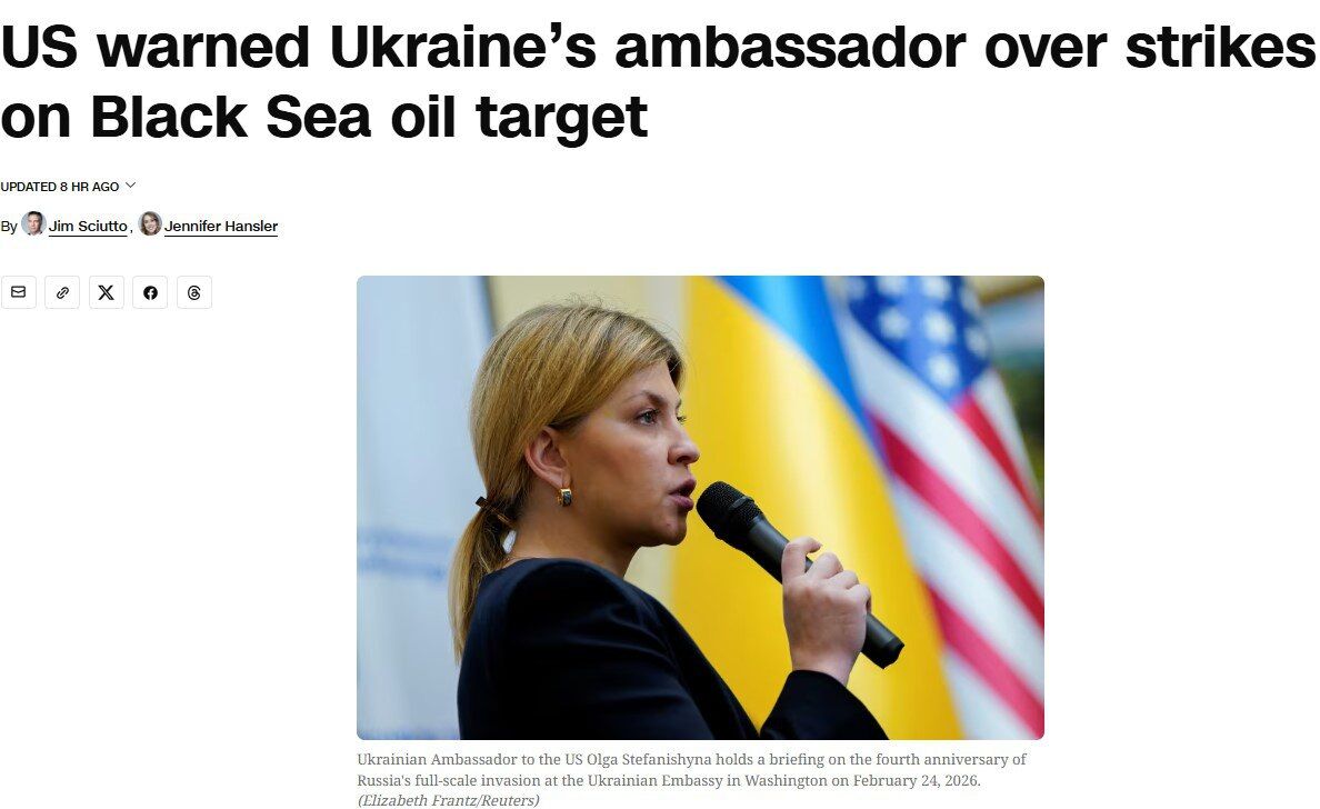 Washington yêu cầu Ukraine ngừng các cuộc tấn công ảnh hưởng đến lợi ích kinh tế của Mỹ, theo Đại sứ Ukraine tại Mỹ Stefanishyna.