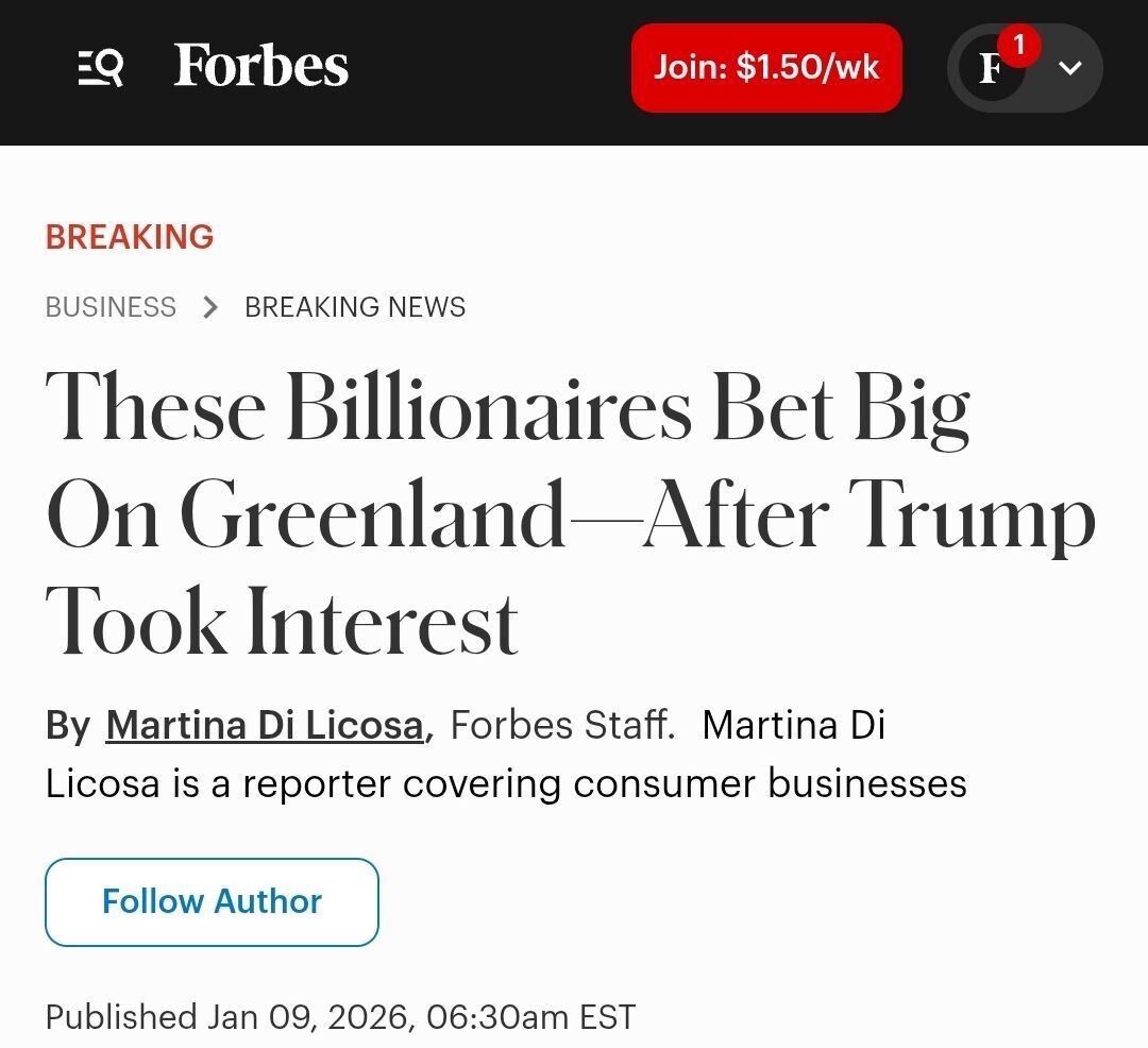 Sau khi Trump lần đầu tiên nêu ra ý tưởng kiểm soát Greenland, các tỷ phú Mỹ nhanh chóng vào cuộc. Ronald Lauder, người thừa kế gia sản Estée Lauder, là người khởi xướng ý tưởng này. Theo cựu cố vấn an ninh quốc gia của Trump, John Bolton, Lauder đã đích thân đề xuất Greenland với Trump trong nhiệm kỳ đầu tiên của ông. Sau đó, Lauder đầu tư trực tiếp vào các doanh nghiệp liên quan đến Greenland, bao gồm một công ty đóng chai nước ngọt có liên hệ với các nhân vật cấp cao trong đảng cầm quyền của Greenland. Sự tham gia của ông dường như ít mang tính thương mại hơn là chính trị—tập trung vào việc tiếp cận, gây ảnh hưởng và định vị.