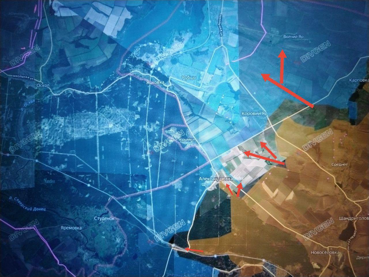 Phía bắc Yarovaya, các trận chiến đang diễn ra theo hướng Izyum ở ngoại ô Aleksandrovka và phía đông bắc Koroviy Yar. Lực lượng Nga tiếp tục tiến công xung quanh khu vực này qua các khe núi Kreydaynıy Melovoy Yar và Krutoy Yar và tiến đến gần khu định cư Volchiy Yar.