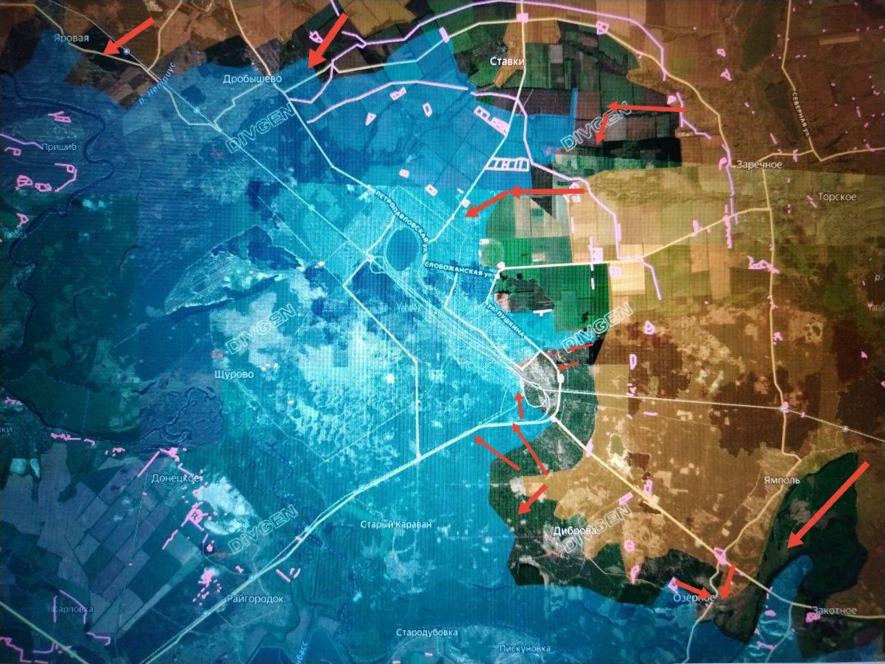 Phía tây Yarovaya, các đơn vị Nga đang giao tranh ở ngoại ô phía đông Sosnovka và Slavyanogorsk Svyatogorsk.