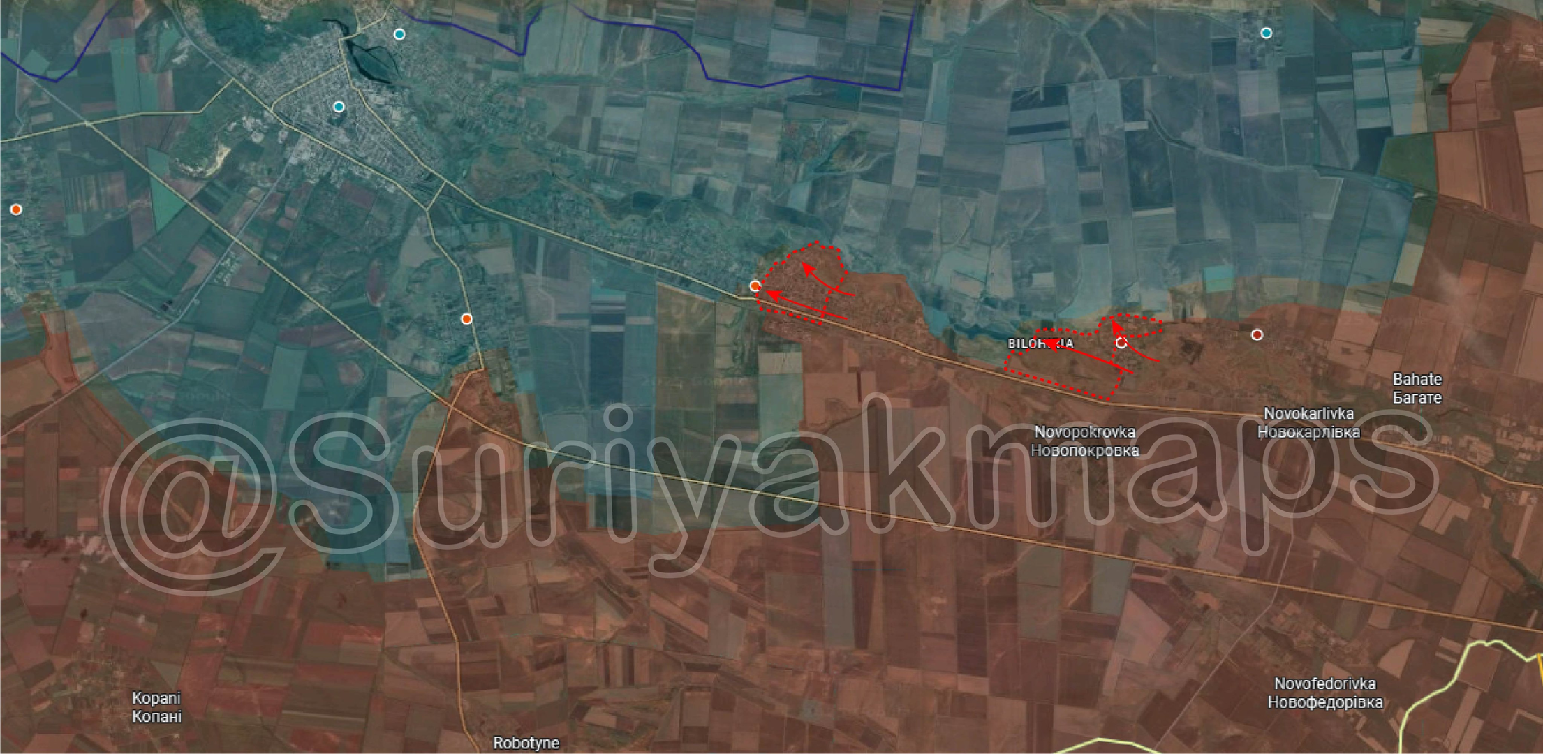 Tình hình mặt trận Orikhiv: Trong mười ngày qua, Quân đội Nga đã hoàn toàn chiếm được khu vực Bilohirya và nối lại các cuộc tiến công về phía đông Mala Tokmachka, đồng thời tái chiếm trường học chính phía bắc nhà tù.